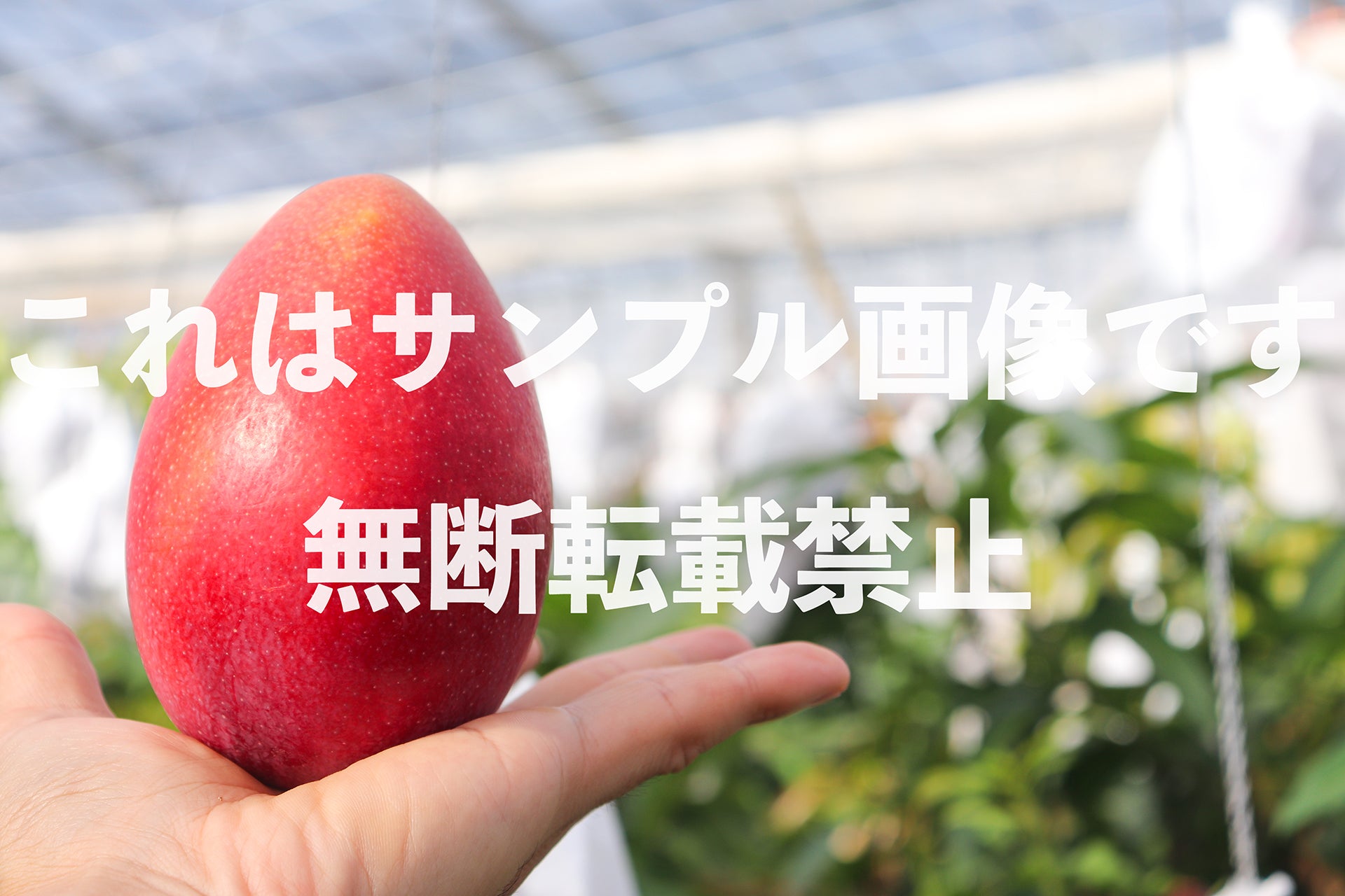 真っ赤に熟した大きなマンゴーの写真です。産地直送のECサイトや、フルーツギフトのバナー画像におすすめです。