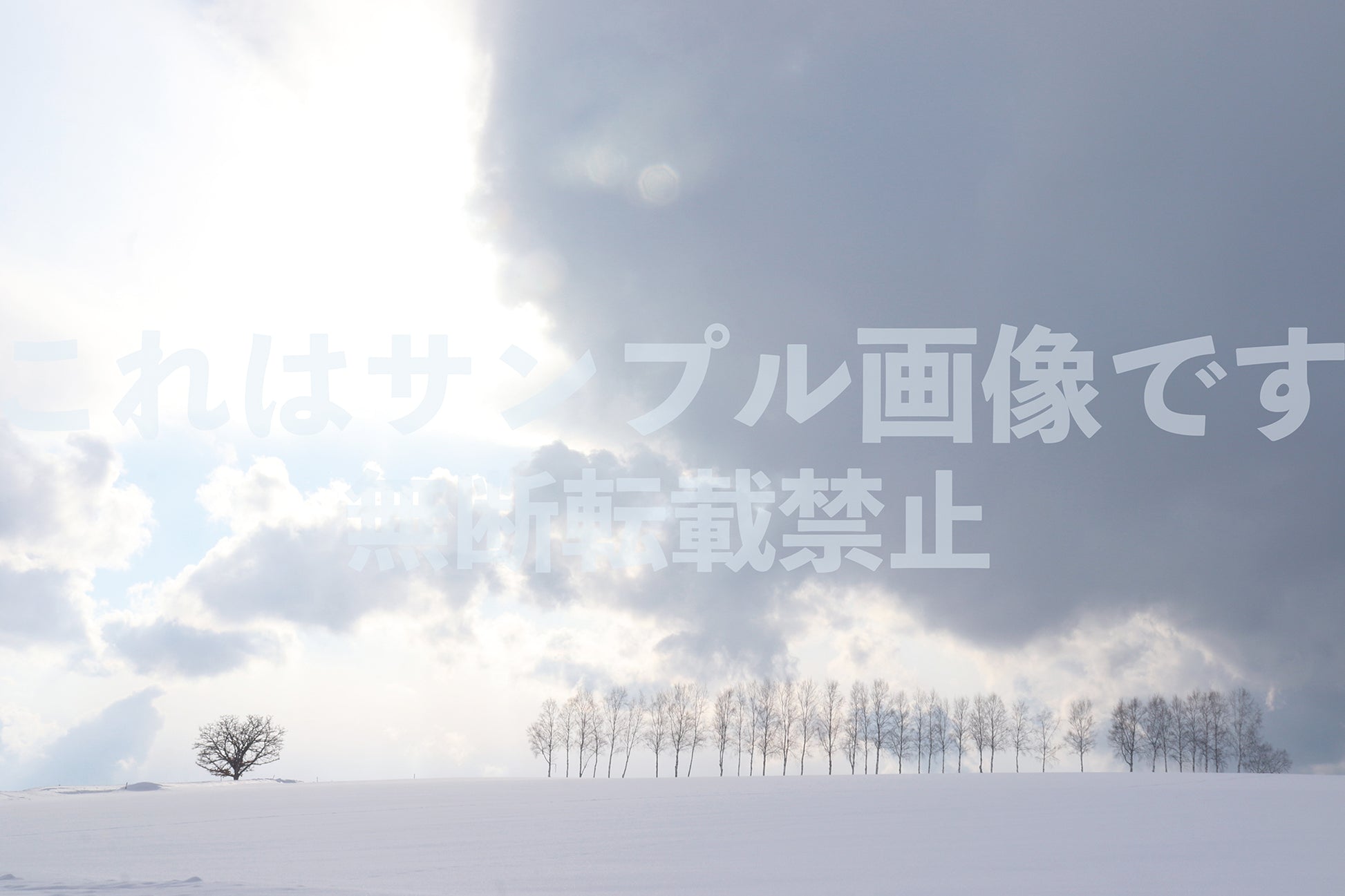 広大な雪原と木々、雲間から差し込む太陽の光が印象的な風景です。 冬の観光ポスターやカレンダー、広さを強調したい背景素材におすすめです。